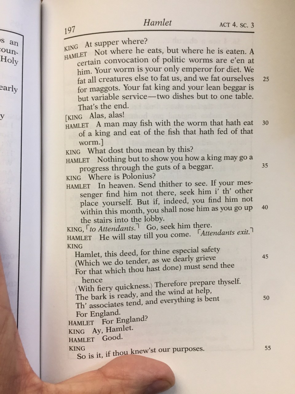 Where is Polonius? At supper! I suppose biologists have a name for the food-chain progress for a king going a’coursing from grave to worm to fish to beggar to dung to worm…